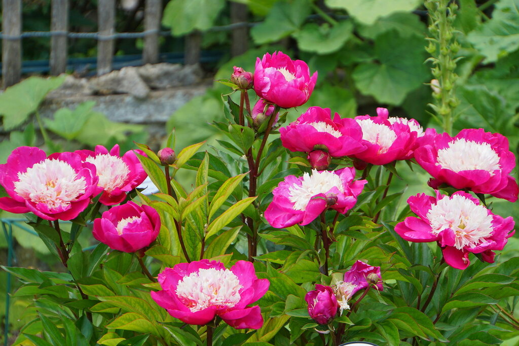Пион Уайт Кэп относится к двухцветным сортам, которые всегда получали высокие оценки среди садоводов. У данного сорта, полученного американскими селекционерами в середине прошлого столетия, есть 12 золотых наград за участие в престижных конкурсах цветоводов. Описание и основные характеристики Основная отличительная особенность пиона Уайт Кэп – высокая морозостойкость. Его корни не повреждаются при морозах до 40 градусов. Кроме того, мощная корневая система смешанного типа, позволяет растению хорошо переносить засушливую погоду. Выращивание роскошных пионов доступно по всей территории России. Пион Уйт Кэп представляет собой раскидистые, до 1,2-1,5 м в диаметре кусты. Его побеги, покрытые темно-зелеными листьями ланцетообразной формы, вырастают до 80 см. У взрослого растения каждый побег дает до 3-4 отростков. И при благоприятных условиях стебли заканчиваются крупными, до 16 см в диметре бутонами. Чашелистики отличаются двумя рядами лепестков яркого малинового окраса. Лепестки крупные, эффектные с волнистым внешним краем. Серединка состоит из множества переобразных лепестков нежного молочно-розового оттенка. Цветение пиона Уайт Кэп начинается в конце мая. В регионах с холодным климатом – в первой декаде июне. Бутоны раскрываются постепенно, и цветочная культура радует цветоводов на протяжении 2-2,5 недель. Кстати, один цветок живет около 5-7 дней. Внешние лепестки довольно плотные, и не боятся дождя и ветра. Пион Уайт Кэп любит хорошо освещенные места. В тени высоких растений добиться обильного цветения практически невозможно. Поэтому для выращивания сорта Уфйт Кэп подбирают открытые участки. Пион будет отлично смотретьтся на фоне невысоких вечнозеленых растений. Можжевельника, туи. Главное не высаживать их совсем рядом. При монопосадках, у основания пионов высаживают хосты или колеусы. Агротехника Сажают пионы Уайт Кэп в августе-сентябре. Саженцы успевают укорениться до наступления холодов. Размножить растение можно делением куста. Есть мнение, что размножается он и черенками. Однако, большинство цветоводов считают такой способ малоэффективным. Помимо хорошего освещения пиону Уайт Кэп нужны легкие и плодородные почвы, с нейтральной или слабокислой средой. Высаживают саженцы в лунки глубиной 50-70 см, на 2/з наполненные смесью из почвы, перегноя и торфа. При необходимости, на дне устраивают дренажный слой из мелкого щебня или битого кирпича. При посадке лунки закрывают таким образом, чтобы верхняя почва находилась на 2-3 см ниже уровня почвы. Важно! Пион Уайт Кэп зацветает через 2-3 года после посадки. В течение сезона цветы поливают, подкармливают органическими и комплексными удобрениями. Отцветшие бутоны своевременно срезают. На зиму побеги обрезают на высоте в 3-5 см. Обильно мульчируют смесью торфа и опилок. Купить качественные саженцы молочноцветкового пиона Уайт Кэп можно в питомнике. Или сделать заказ в интернет-магазине «Садовод». Доставка осуществляется по всей территории России.